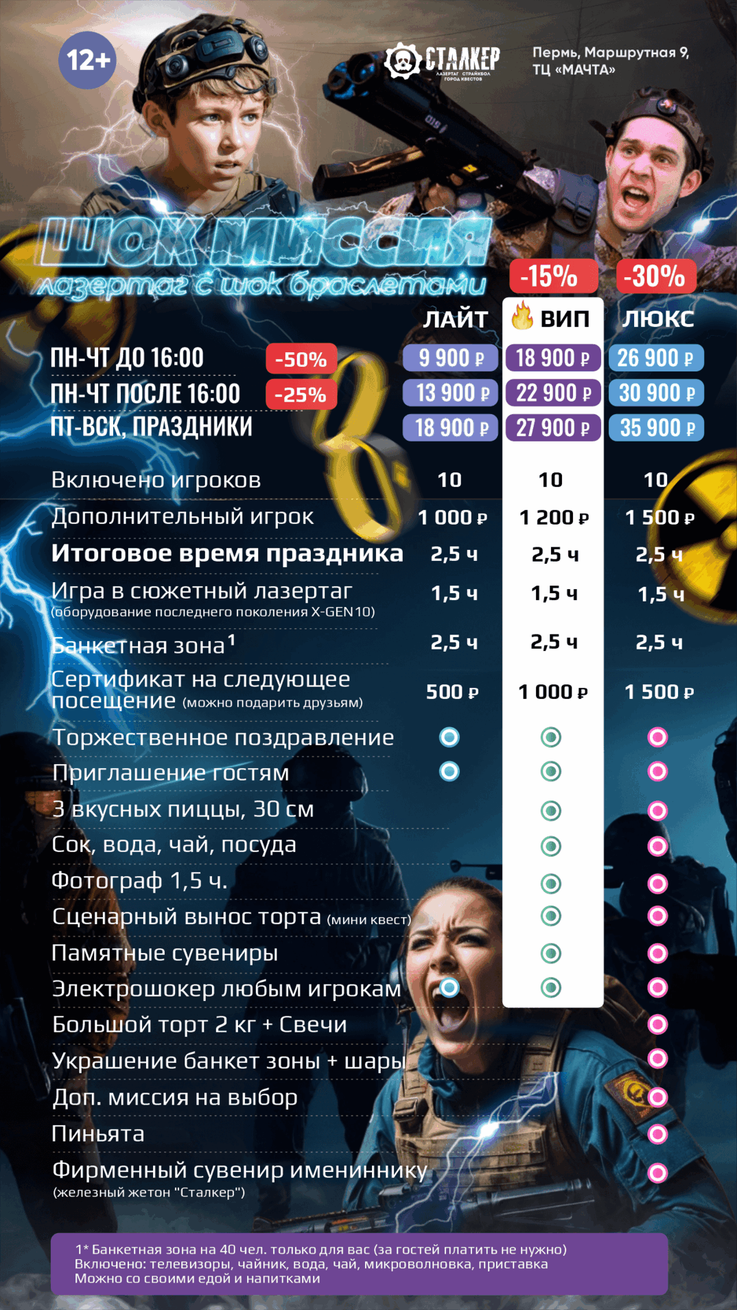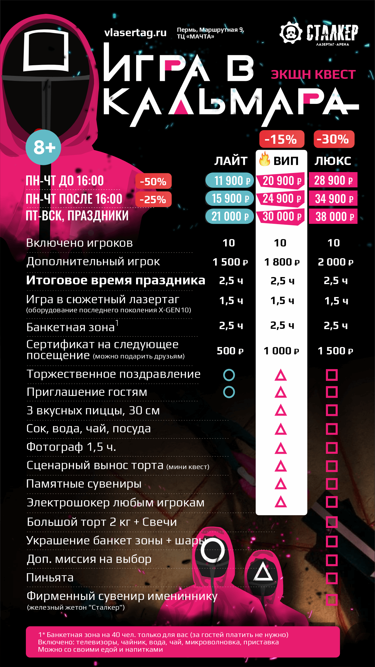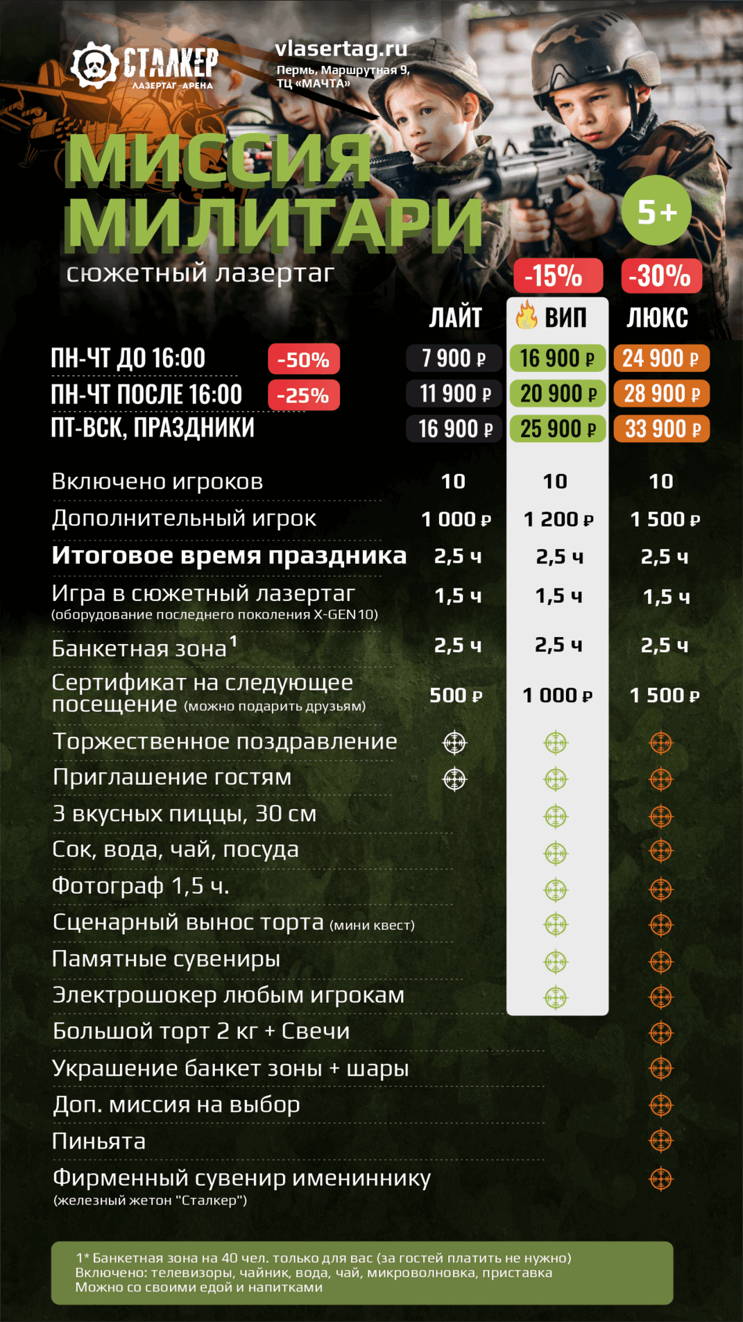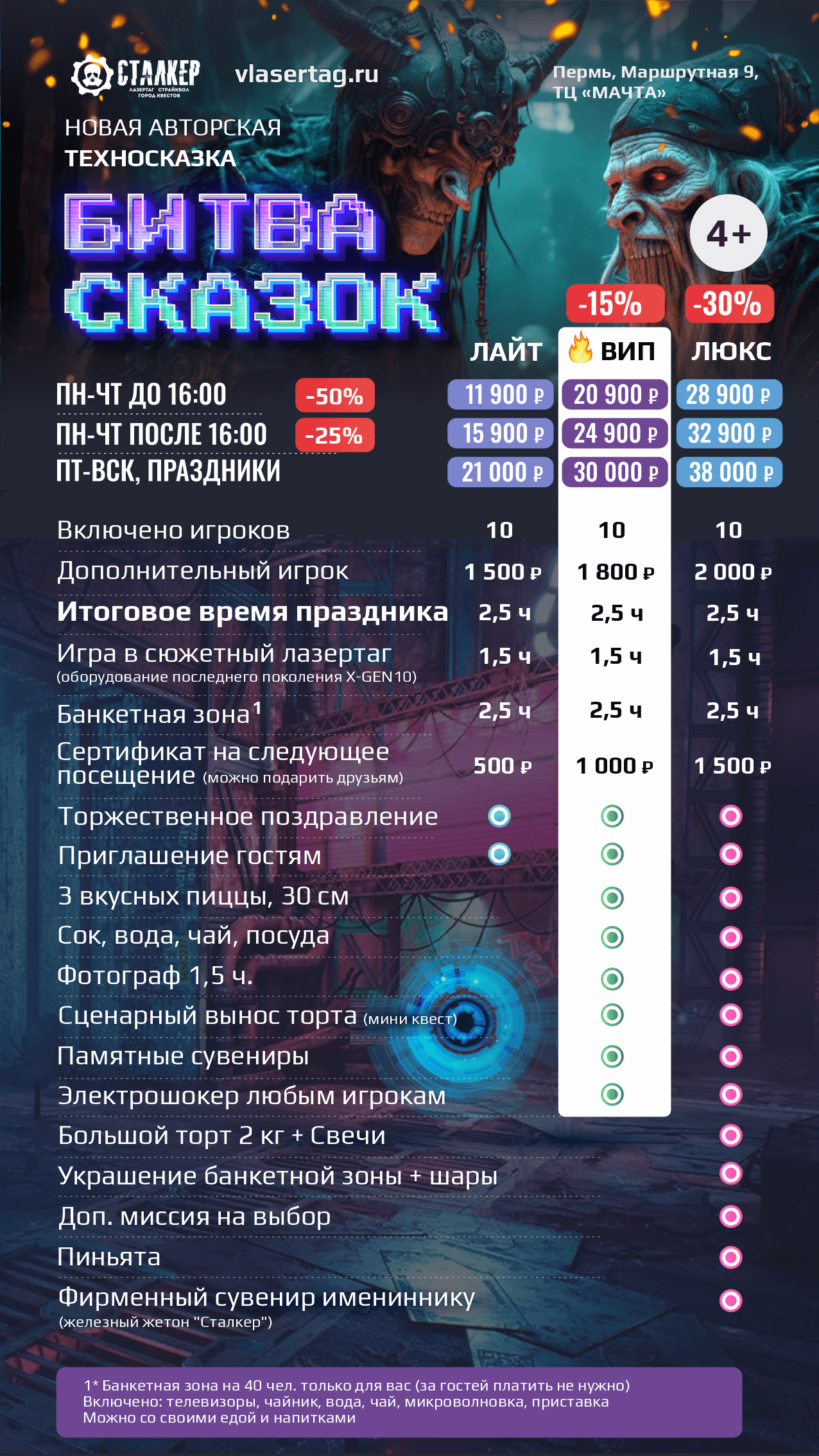 | | 🔫 ЛАЗЕРТАГ за 10 чел 🔫 ЛАЗЕРТАГ за 10 чел | 🥽 ВИАР за 10 чел 🥽 ВИАР за 10 чел | 🗝️ КВЕСТЫ за 10 чел | 2 ПЛОЩАДКИ СРАЗУ | ВСЕ 3 ПЛОЩАДКИ |