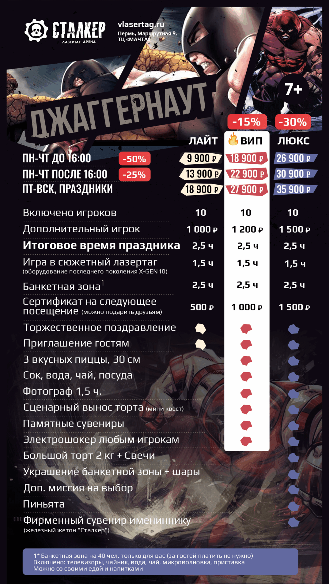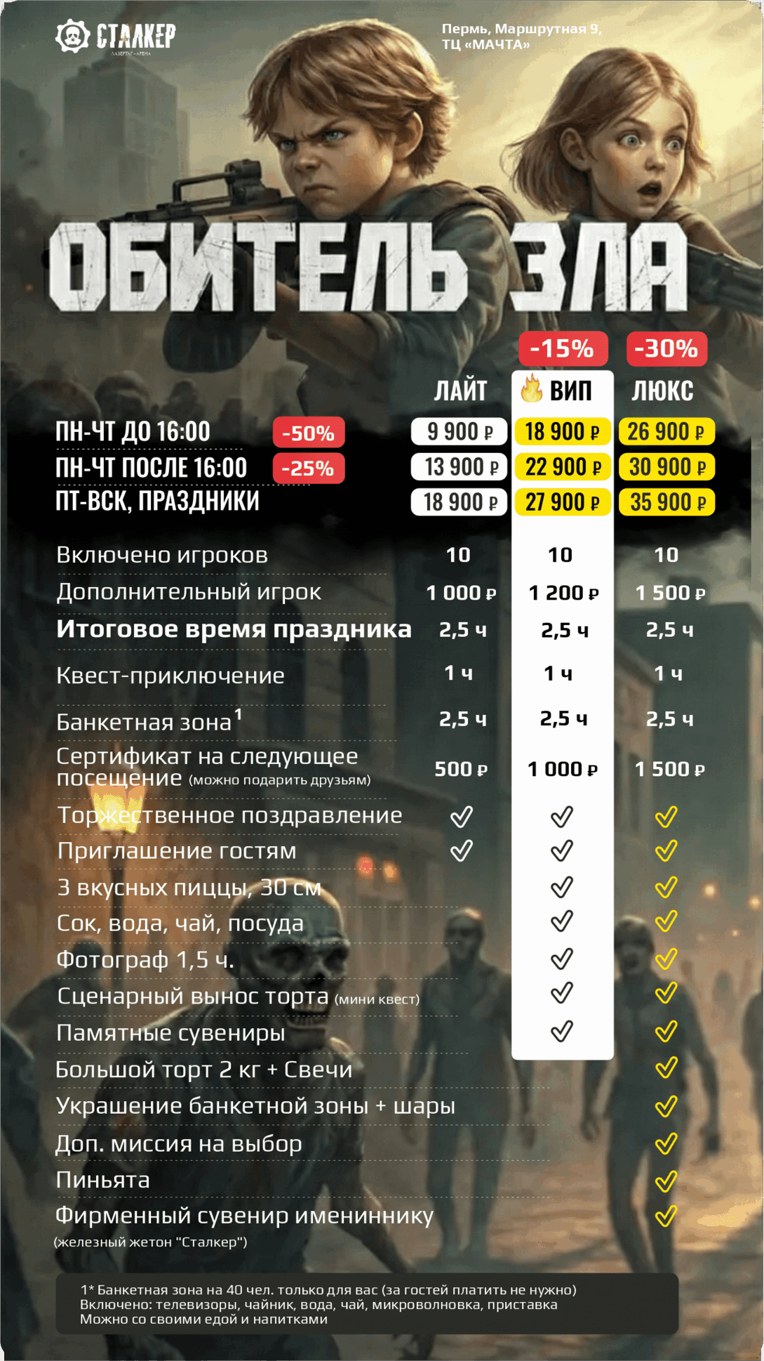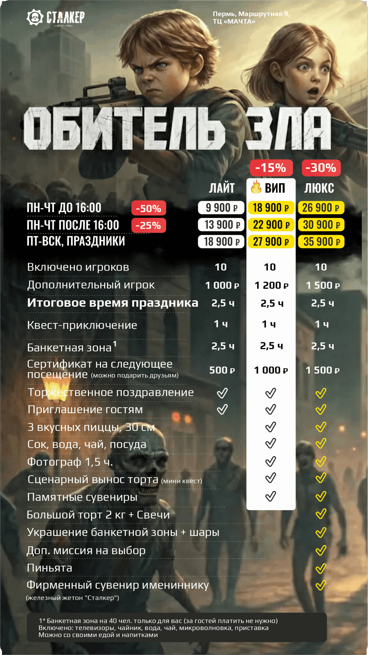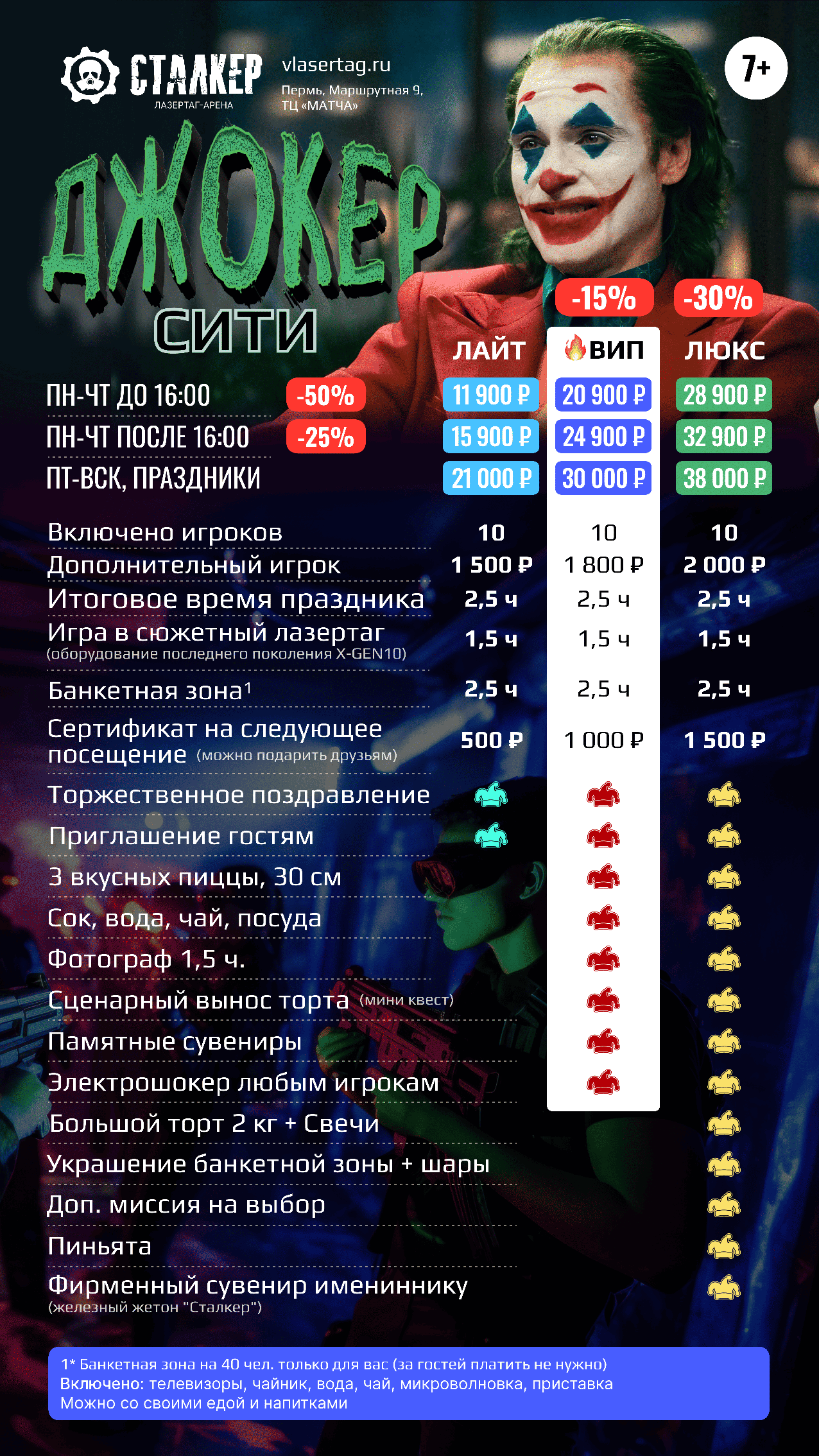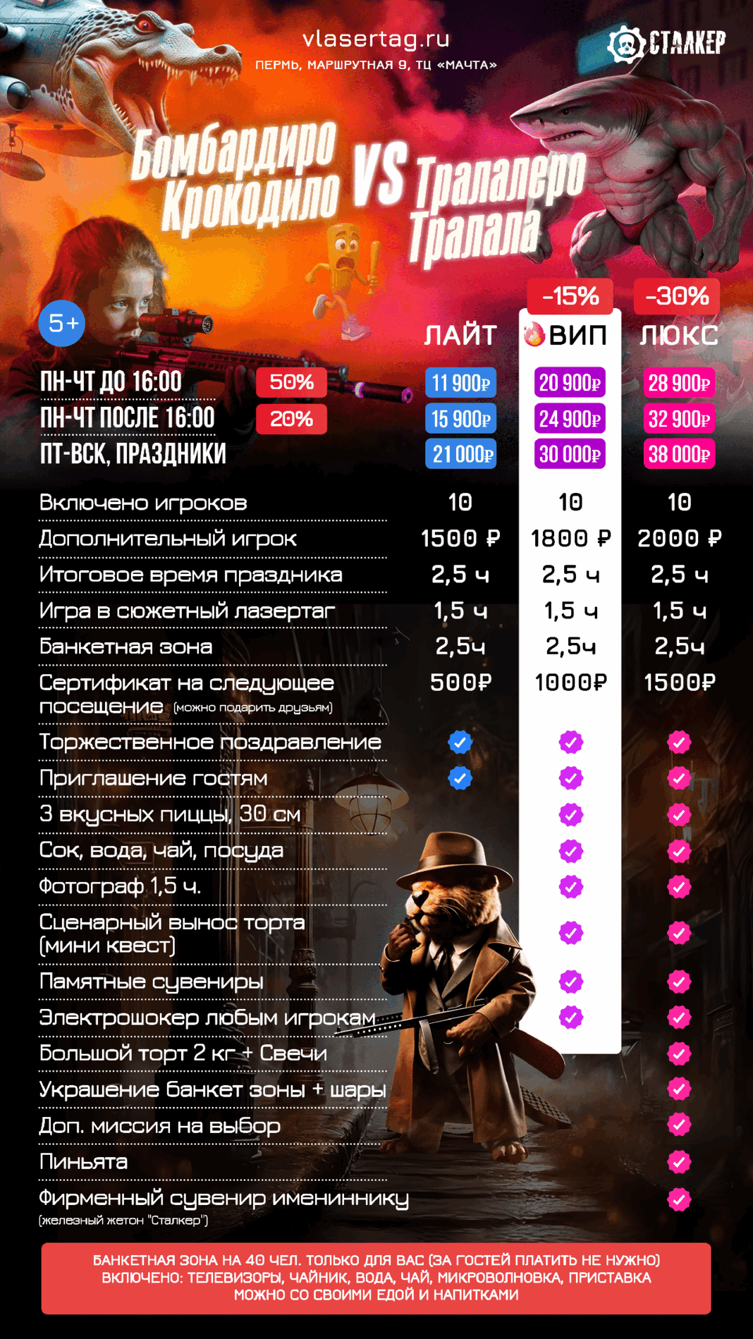 | | 🔫 ЛАЗЕРТАГ за 10 чел 🔫 ЛАЗЕРТАГ за 10 чел | 🥽 ВИАР за 10 чел 🥽 ВИАР за 10 чел | 🗝️ КВЕСТЫ за 10 чел | 2 ПЛОЩАДКИ СРАЗУ | ВСЕ 3 ПЛОЩАДКИ |